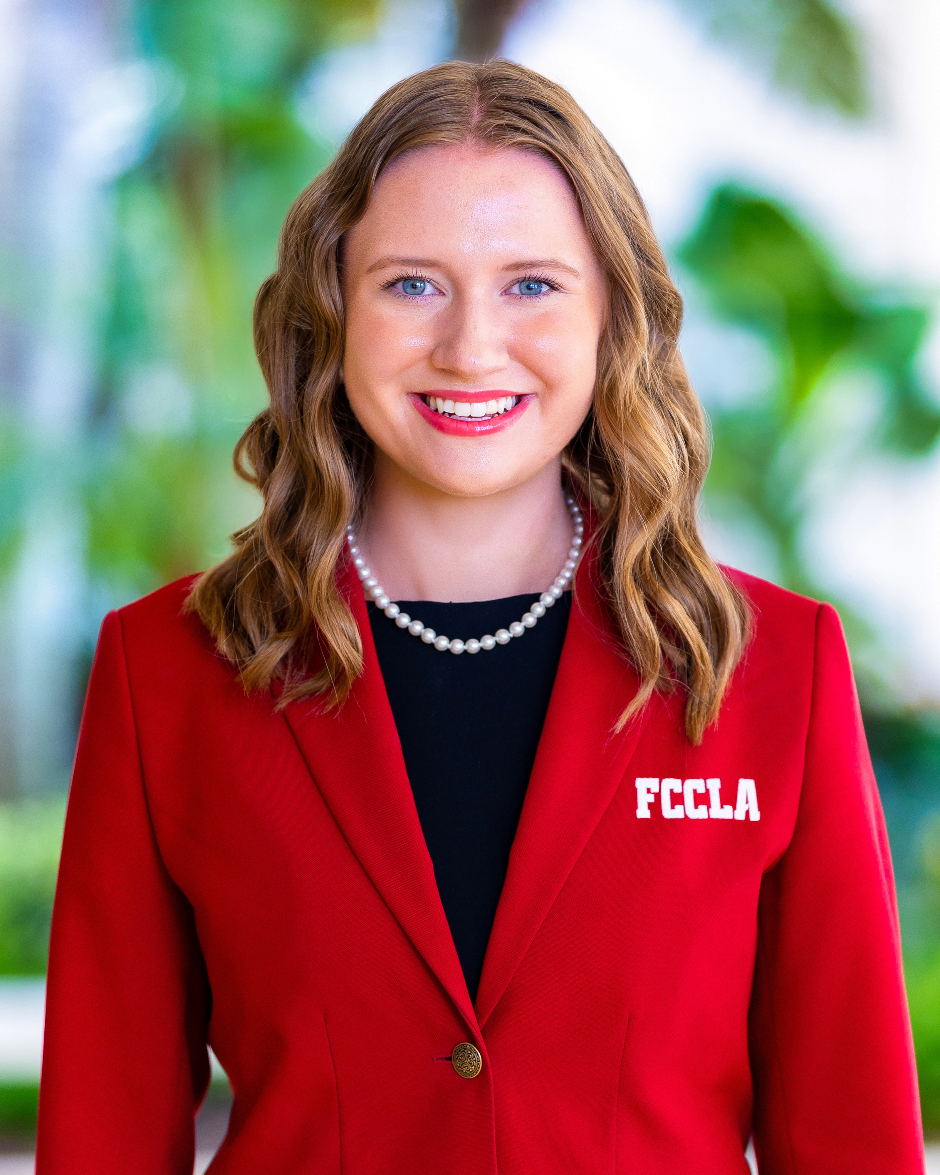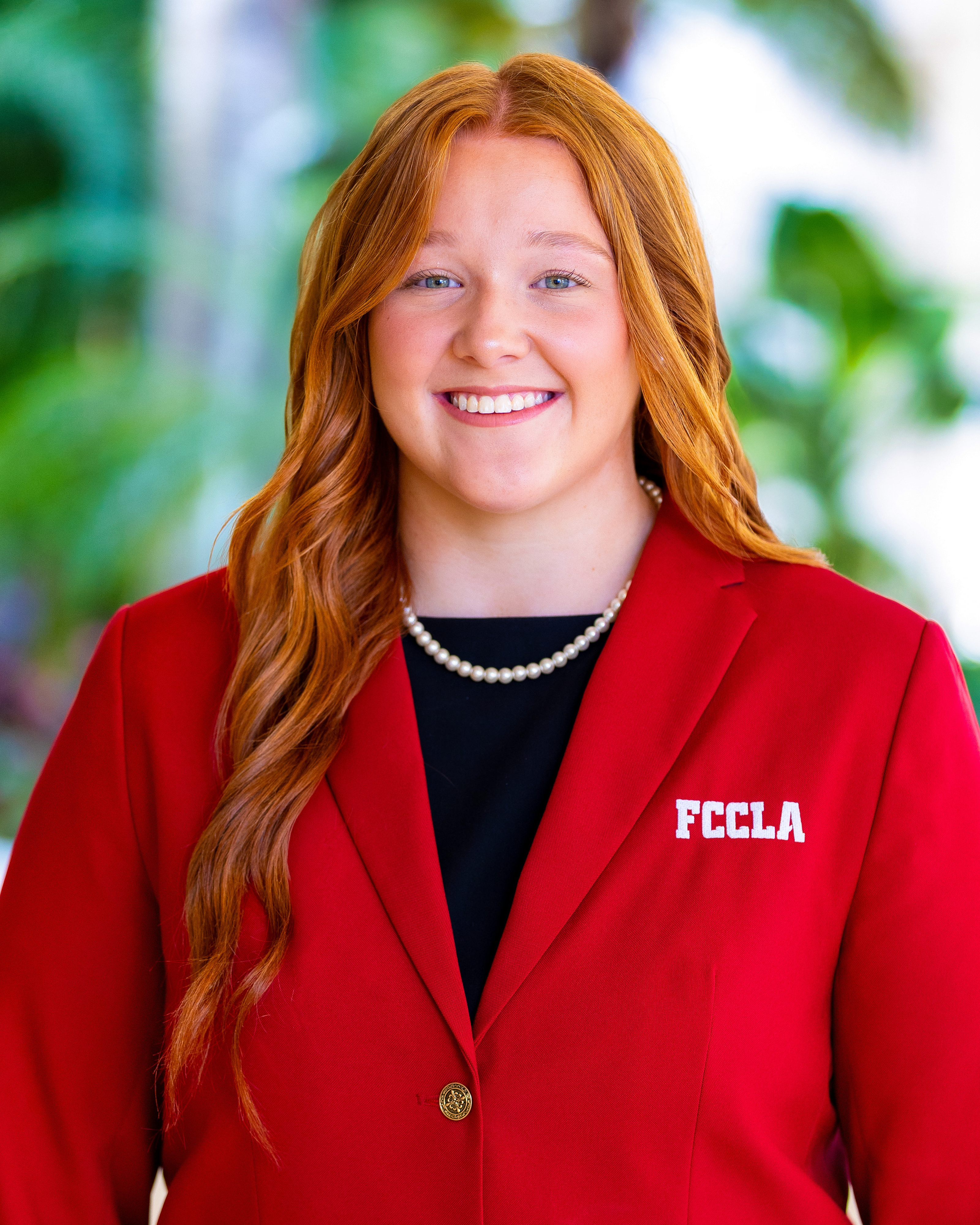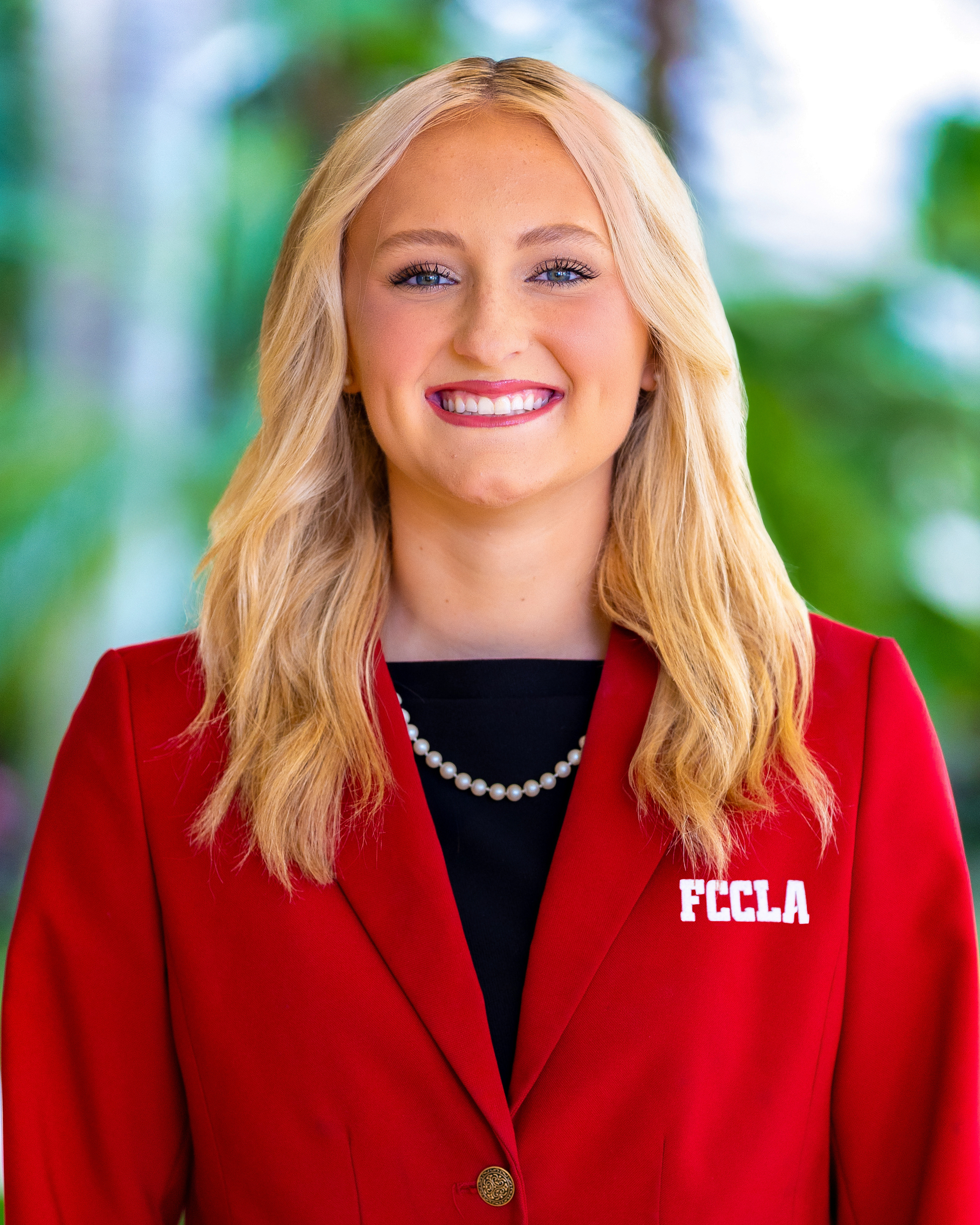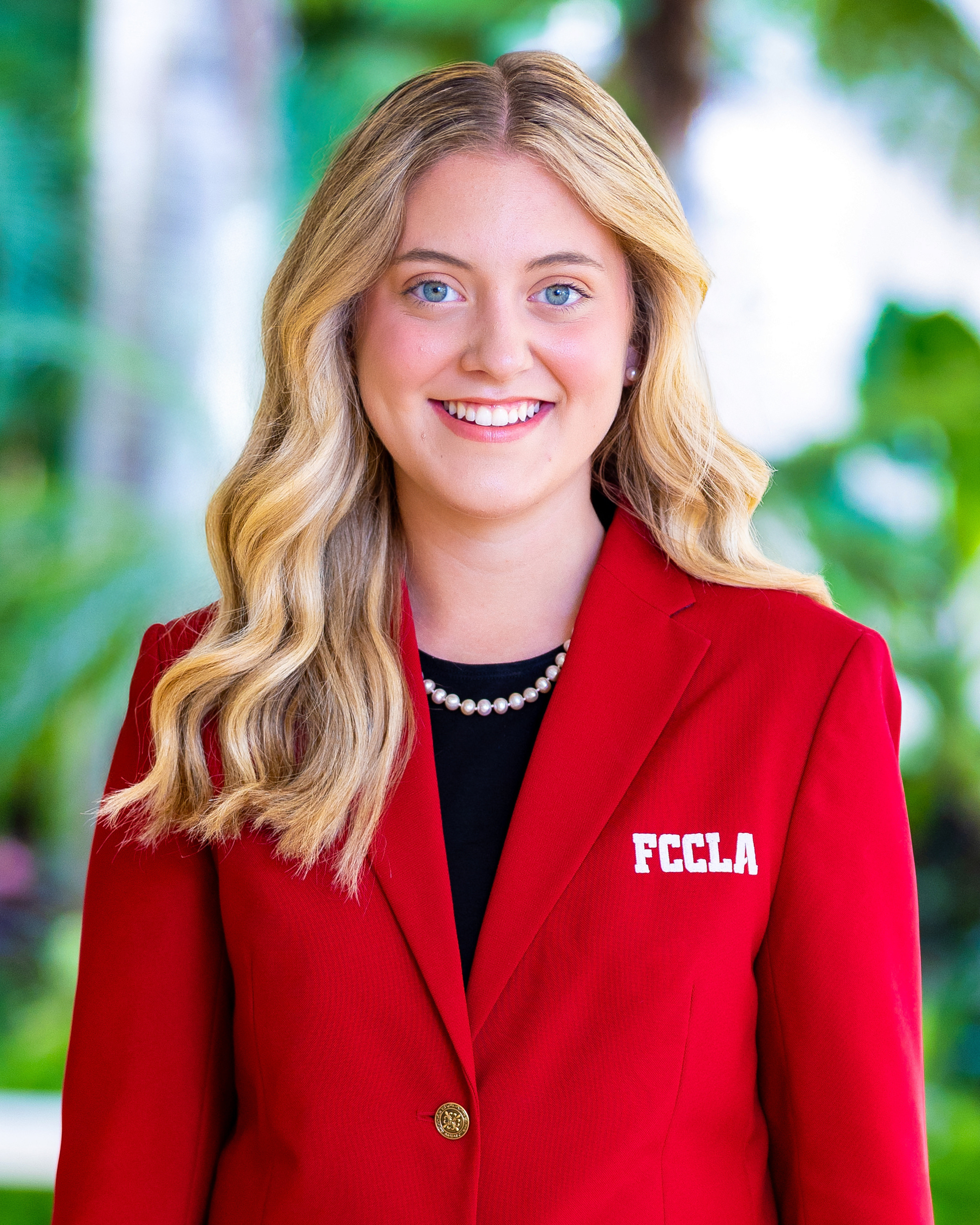 Madison Goodwin has been an active member of FCCLA for four years, using every opportunity to lead, serve, and grow. She has held leadership positions as Florida FCCLA State President and President-Elect and has competed in both STAR Events and Skill Demonstration Events, including Focus on Children and Culinary Knife Skills. Madison has contributed to officer development initiatives, organized impactful community service projects, and played a key role in advancing family and consumer sciences education throughout the state.