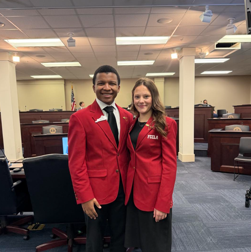 One student leader shared a powerful personal reflection about growth through FCCLA—describing how they began as a nervous freshman in 2022, unsure of themselves and even uncomfortable wearing the organization’s signature red blazer. Today, they said, they stand confident—ready to speak to anyone, anywhere—because FCCLA created a community and opportunities that changed their life.